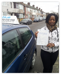 I chose Blue Driving School because my friends said it is a local school with an excellent reputation and I am glad I did! Thank you for getting me through the test first time and for making the process so enjoyable.